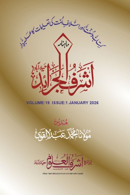 ماہنامہ اشرف الجرائد جنوری 2026 by idaraashrafululoomhyd@gmail.com | جنوری 5, 2026 | اشرف الجرائد | 2 comments ماہ جنوری کے مضامین از مولانا شیخ عبد القادر فرید قاسمی رشتہ داروں کے حقوق کے معاملے میں اللہ سے ڈریں از مولانا مفتی محمد احمد علی قاسمی آسانی پیدا کرو ،تنگی نہیں از مدیر نسلِ نو کے دین وایمان کی حفاظت کیسے ہو؟ از مولانا سید خواجہ نصیر الدین قاسمی حضور ﷺ کی طیبہ آمد اور انصار کا والہانہ استقبال از مولانا مفتی محمد رفیع حنیف قاسمی اسلام کی باکمال خواتین از حضرت مولانا زاہد الراشدی صاحب حضرت عمر بن عبد العزیز ؒ کا تین نکاتی احتسابی فارمولا از مولانا مفتی محمد منور قاسمی احتسابِ اعمال کی ضرورت از مولانا مفتی محمد سلمان قاسمی محبوب نگری نیا سال پرانا پیغام از مولانا مفتی محمد سلمان قاسمی کریم نگری مغربی تہذیب کے اثرات اور ہمارا معاشرہ از مولانا مفتی محمد قاسم اوجھاری مسلمان ’’وندے ماترم‘‘ کیوں نہیں پڑھتے؟ پیشکش :مولانامفتی محمد احمد علی قاسمی اشرف المجالس :حضرت مولانا محمد عبد القوی صاحب مدظلہٗ ترتیب :مولانامفتی محمد احمد علی قاسمی ارشاد السالکین :حضرت مولانا محمد عبد القوی صاحب مدظلہٗ از مولانامفتی محمد ندیم الدین قاسمی آپ کے شرعی مسائل ڈاون لوڈ کریں 2 Comments مفتی محمد موسٰی بھالکی on جنوری 6, 2026 at 9:24 شام ماشاءاللہ Reply محمد خلیل الرحمن on جنوری 6, 2026 at 9:31 شام ماشاءاللہ بہترین جریدہ ہے بہت معلوماتی اور قابل عمل و قابل فکر الله تعالی اسمیں ترقی اور بہتری عطا فرمائے Reply Submit a Comment جواب منسوخ کریںآپ کا ای میل ایڈریس شائع نہیں کیا جائے گا۔ ضروری خانوں کو * سے نشان زد کیا گیا ہےتبصرہ * نام * ای میل * ویب سائٹ اس براؤزر میں میرا نام، ای میل، اور ویب سائٹ محفوظ رکھیں اگلی بار جب میں تبصرہ کرنے کےلیے۔
